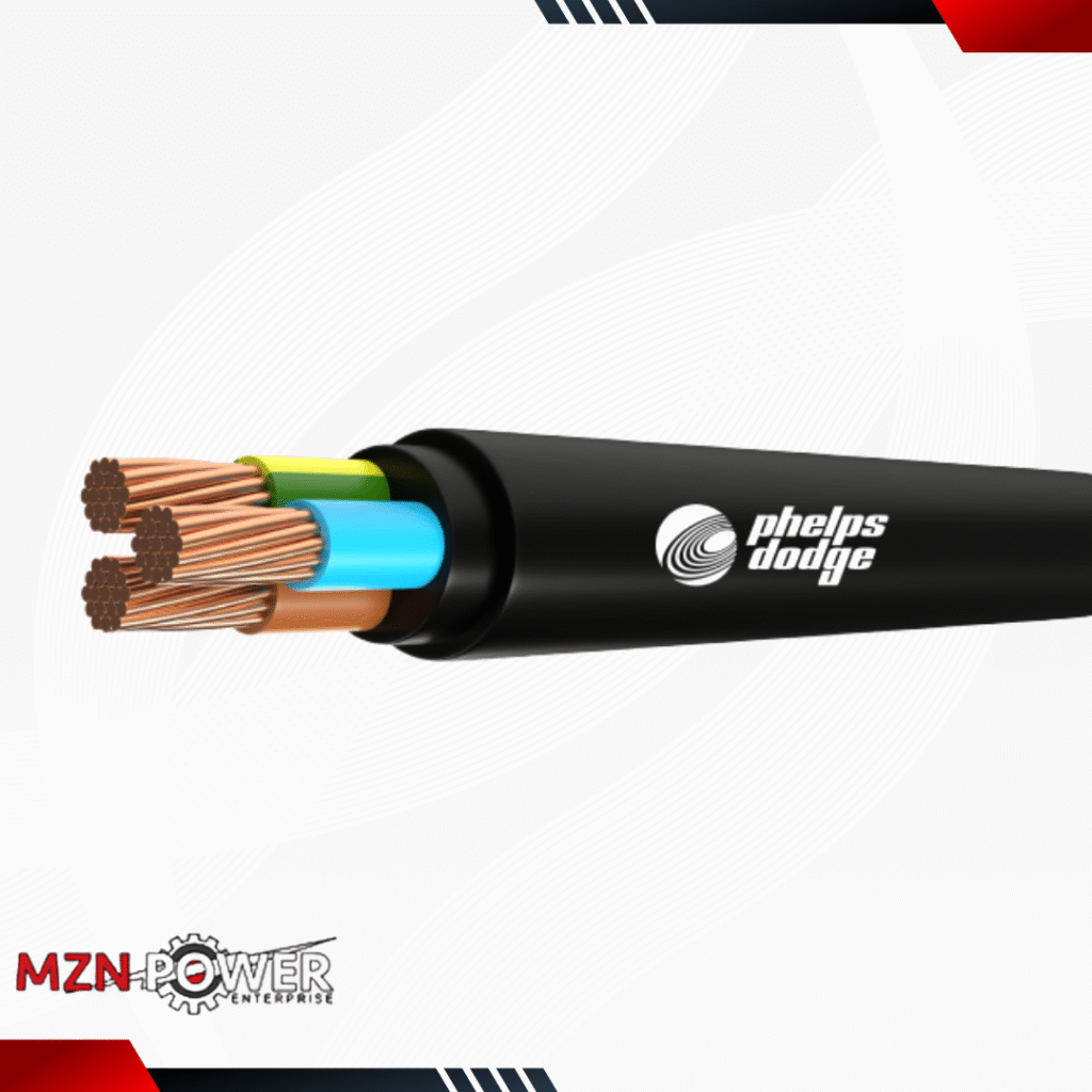 PHELPS DODGE wires and cables, engineered for heavy-duty industrial and commercial use. These cables are crafted to handle high power loads and harsh operating conditions, including exposure to heat, chemicals, and mechanical stress.